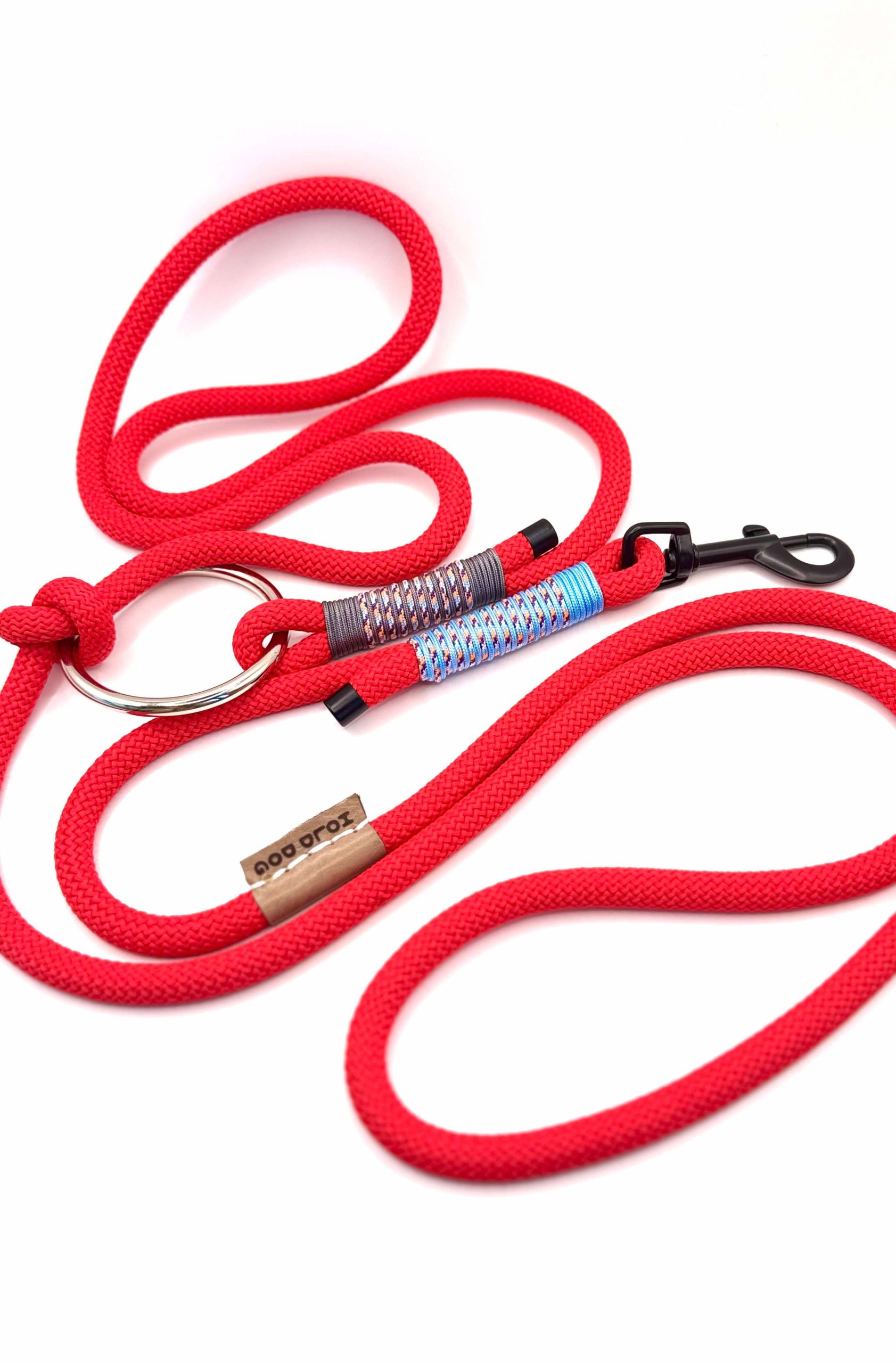 Ίδια υλικά με το απλό μας λουράκι, 3,5m καθαρό μάκρος σχοινιού, προσαρμόζεται (μέσω κόμπου/ κρίκου) στο μέγεθος που σας βολεύει.