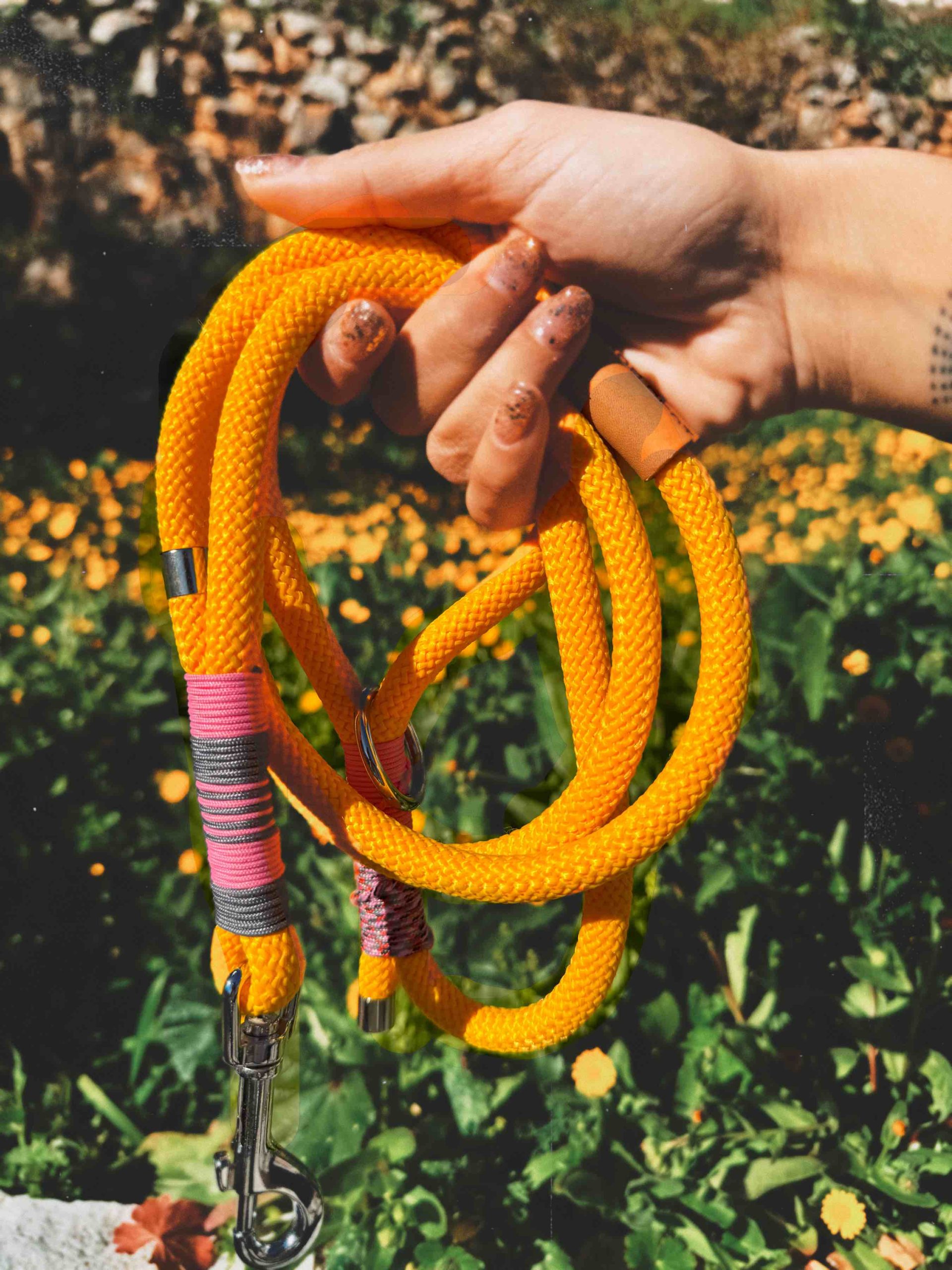 Για να κρατάμε τους φίλους μας κοντά! Με στυλ αλλά και ασφάλεια, η βάση των λουριών είναι από ναυτικό σχοινί (πολυεστέρα), εξαρτήματα από ανοξείδωτο ατσάλι και λεπτομέρειες από κορδόνι αναρρίχησης ( πολυπροπυλενιο)