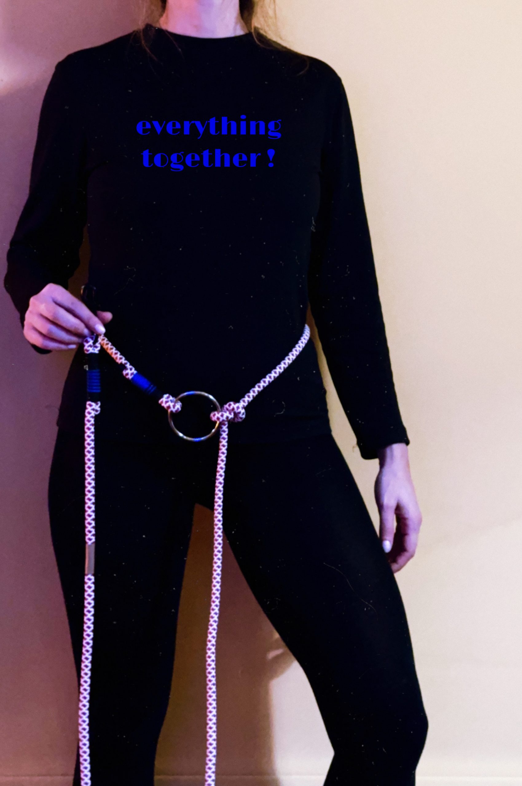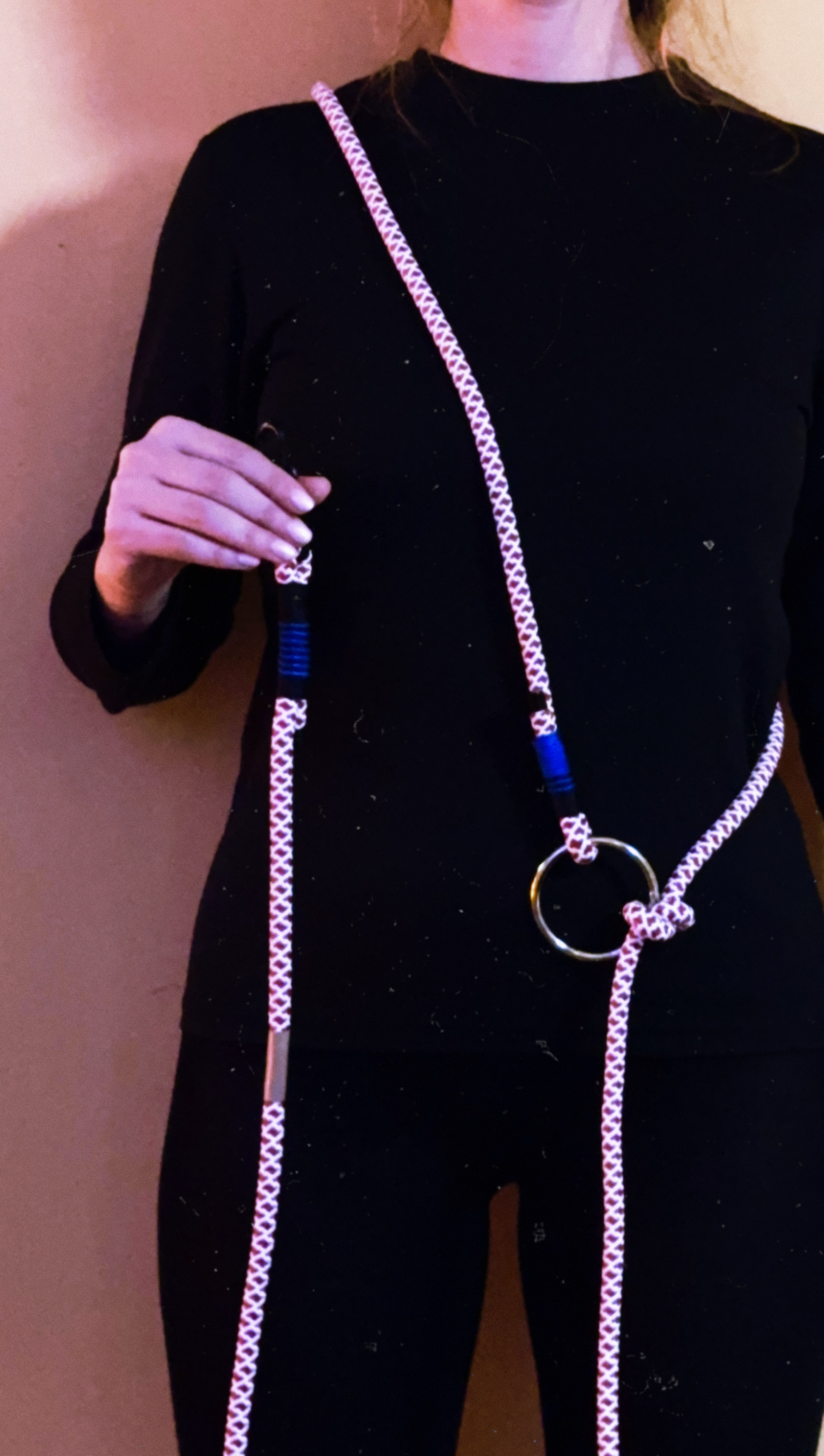 Ίδια υλικά με το απλό μας λουράκι, 3,5m καθαρό μάκρος σχοινιού, προσαρμόζεται (μέσω κόμπου/ κρίκου) στο μέγεθος που σας βολεύει.
