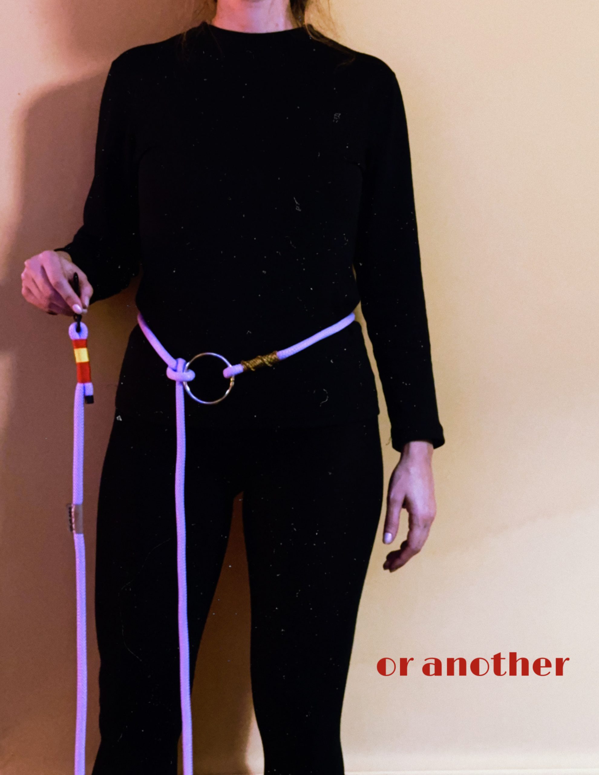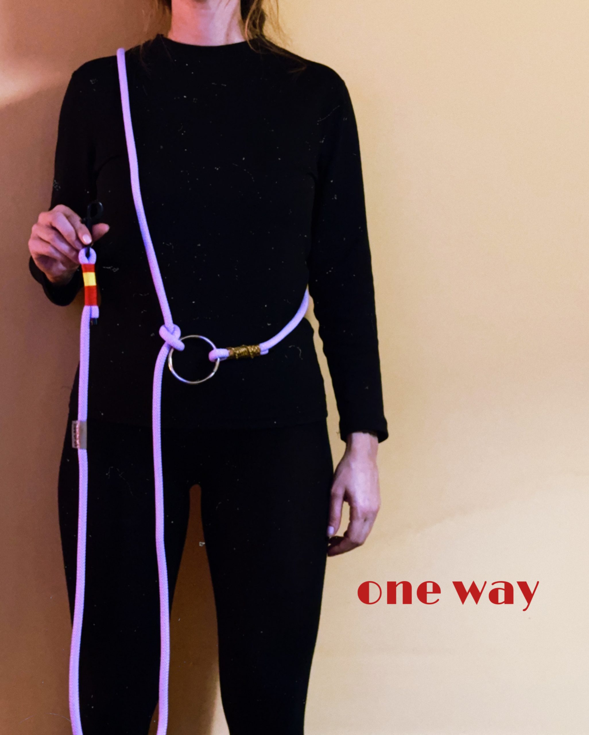 Ίδια υλικά με το απλό μας λουράκι, 3,5m καθαρό μάκρος σχοινιού, προσαρμόζεται (μέσω κόμπου/ κρίκου) στο μέγεθος που σας βολεύει.
